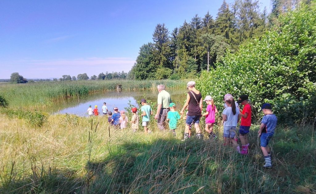 Insgesamt 17 Kinder sind der Einladung der Schutzgemeinschaft Wemdinger Ried e.V. gefolgt und haben im Rahmen des Wemdinger Ferienprogramms das Leben im Wasser erkundet.